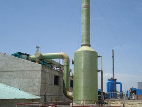 鍋爐除塵器的煙氣運(yùn)行路徑:煙氣從現(xiàn)有的靜電除塵器和鼓風(fēng)機(jī)通過煙道系統(tǒng);流過一個(gè)軸流增壓風(fēng)機(jī),進(jìn)入脫硫塔。煙氣進(jìn)入脫硫塔后,與包含氨水漿液的逆流噴漿接觸,其中的SO2由氨水漿液吸收。漿液同時(shí)使氣體飽和,并將其從入口的135℃溫度冷卻到50℃,緊接著氣體穿過脫硫塔頂部兩個(gè)波紋型除霧器,兩層有效的除霧器安裝于脫硫塔的上部,以便去除(煙氣中)附帶的液滴。運(yùn)行的噴霧塔中的氣體,離開脫硫塔,再次通過鍋爐,以重新加熱氣體,并以80℃的溫度、按設(shè)計(jì)的操作條件進(jìn)入現(xiàn)有的煙囪裝置。